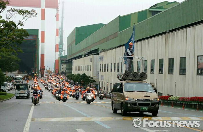 앞서 노협은 이날 오전 8시부터 정시 출·퇴근, 특근·작업 거부 등 준법투쟁에 돌입했다. 오전 12시에는 민주광장에서 구조조정에 반대하는 약식집회와 오토바이 경적투쟁을 벌이기도 했다.<사진제공=삼성중공업 노동자협의회>