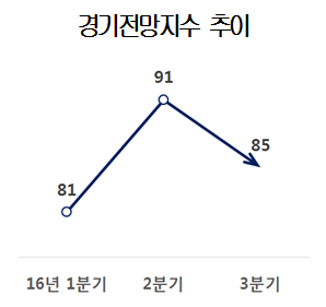 대한상공회의소가 5월27일부터 지난달 27일까지 한 달 간 전국 2400여개 국내기업을 대상으로 '3분기 경기전망지수(BSI) 조사'를 실시한 결과, 전국의 기업경기전망지수는 2분기 91에서 3분기 85로 하락했다.
