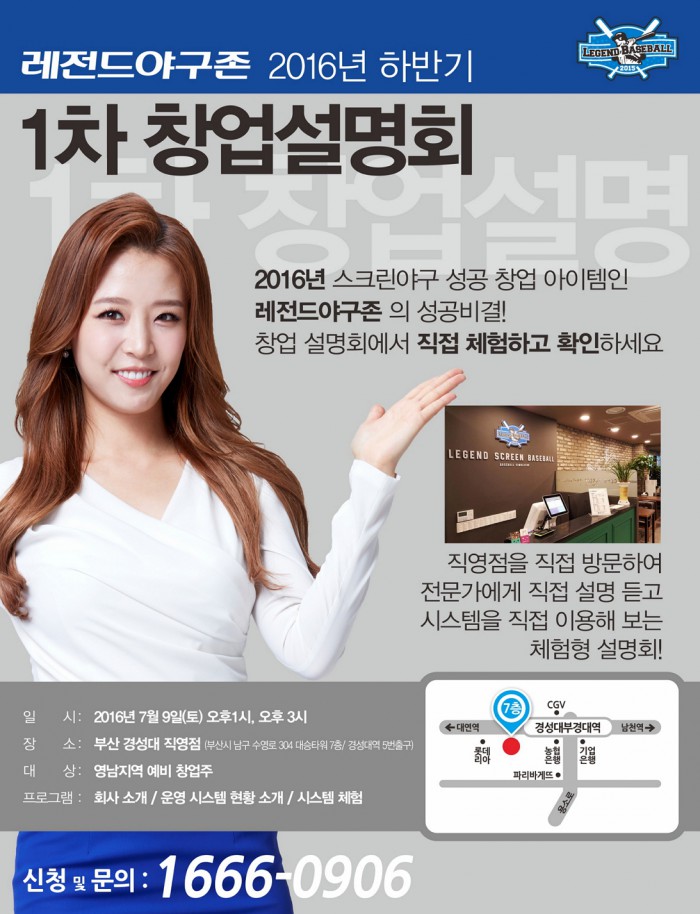 (서울=포커스뉴스) 스크린야구장 시스템 개발업체 레전드야구존은 오는 9일 오후 3시에 부산 경성대점에서 창업설명회를 개최한다고 5일 밝혔다.