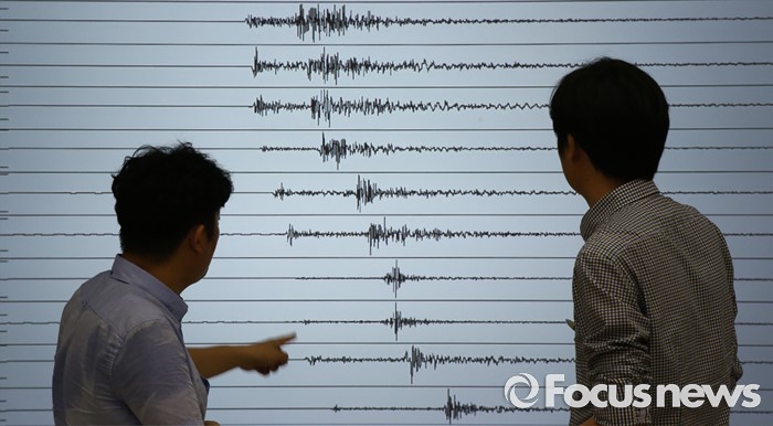 (대전=포커스뉴스) 6일 오전 대전 유성구 한국지질자원연구원 지진연구센터에서 직원들이 지진상황을 모니터 하고 있다. 지난 5일 오후 8시 33분께 울산 동구 동쪽 52㎞ 해상에서 규모 5.0의 지진이 발생했다.