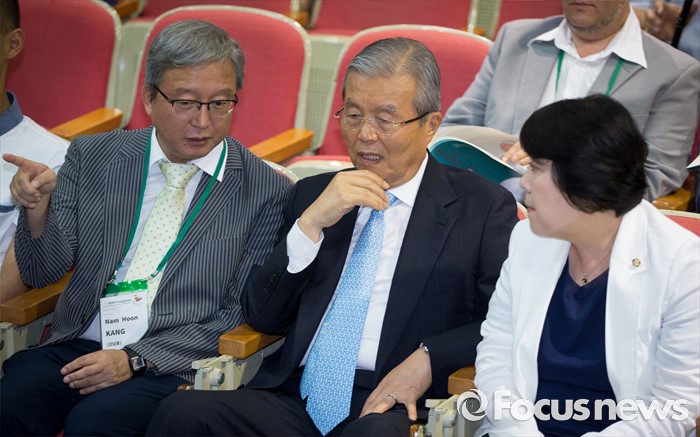 (서울=포커스뉴스) 김종인(가운데) 더불어민주당 비상대책위원회 대표가 7일 오전 서울 서강대학교 다산관에서 열린 제 16차 기본소득지구네트워크 대회에서 참석자들과 대화하고 있다. 이번 16차 대회는 아시아에서는 처음 열리는 기본소득 국제 대회로 세계 23개국에서 기본소득 운동을 벌이는 활동가와 이론가들이 참석한다.