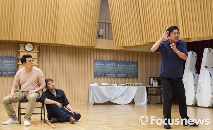 (서울=포커스뉴스) 7일 오후 서울 종로구 세종문화회관에서 열린 오페라 '도요새의 강' 제작발표회에 참석한 출연진이 장면을 시연하고 있다.