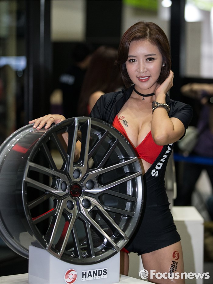 (서울=포커스뉴스) 7일 오전 서울 강남구 코엑스에서 열린 제14회 서울오토살롱에서 레이싱모델이 튜닝용품을 선보이고 있다.