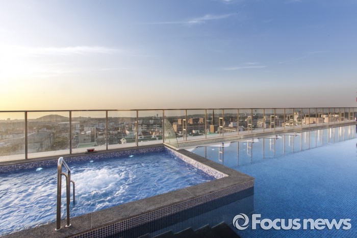 롯데시티호텔제주는 제주국제공항에서 차로 5분 거리인 제주시내 중심가에 위치해 있다. 패키지 이용객은 6층 야외정원의 사계졀 야외 온수풀과 자쿠지, 풀바 및 건식 사우나를 무료로 이용할 수 있다.롯데호텔제주 패키지 이용객은 6층 야외정원에 있는 사계절 온수풀을 무료로 이용할 수 있다.<사진제공=호텔롯데>