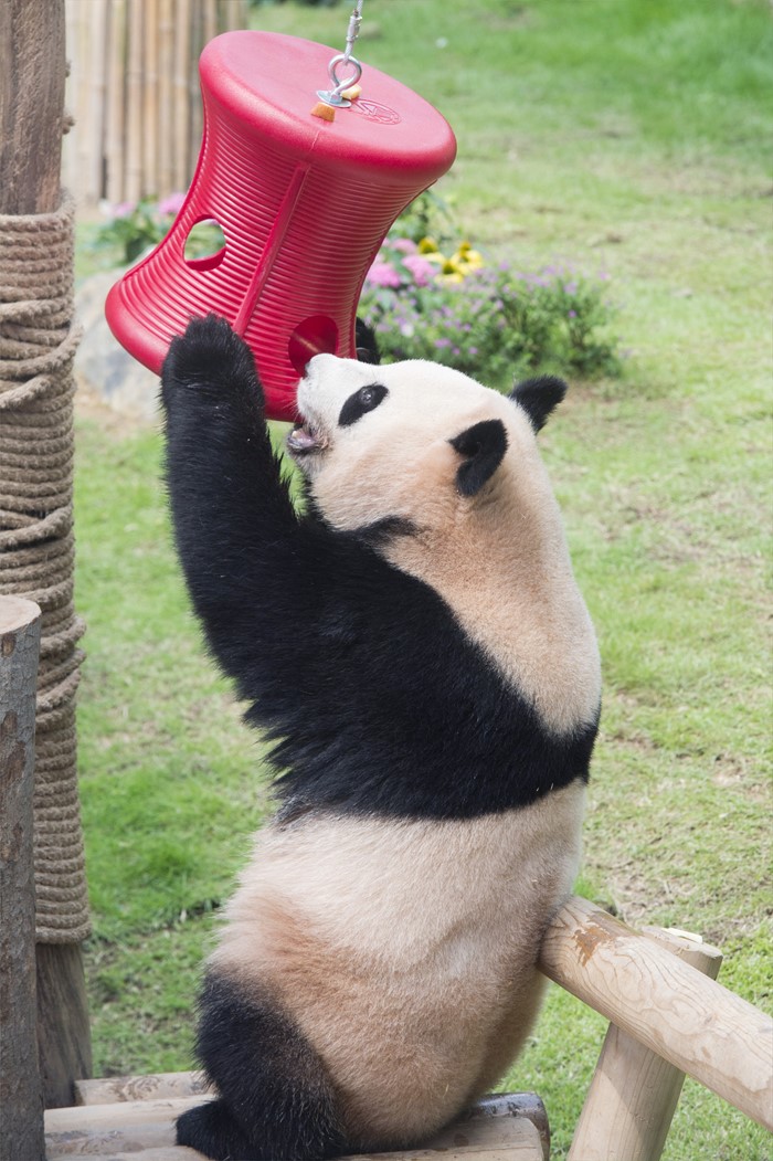 (서울=포커스뉴스) 10일 오전 경기도 용인시 에버랜드에서 판다 러바오(수컷·2012년 7월 28일생)와 아이바오(암컷·2013년 7월 13일생)의 네 번째와 세 번째 생일 잔치가 열렸다. 에버랜드는 오는 28일까지 판다 생일주간으로 지정해 각종 이벤트 행사를 진행한다. <사진제공=에버랜드>