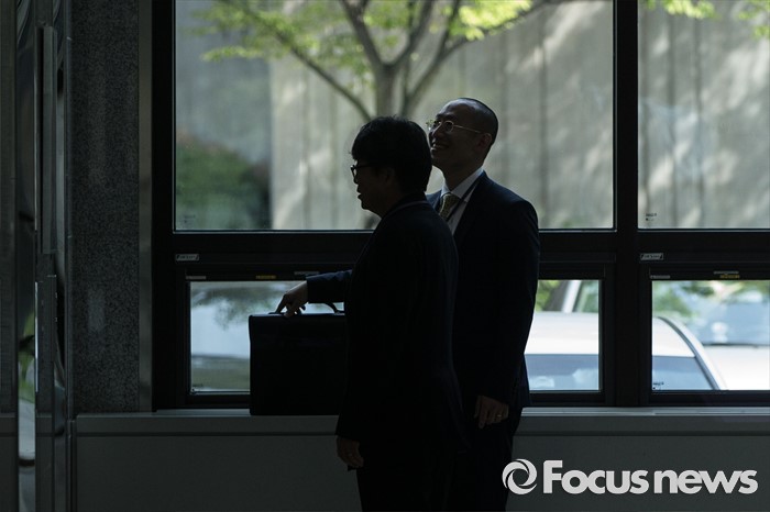 (서울=포커스뉴스) '대우조선 비자금 조성' 의혹을 받고 있는 남상태 전 사장의 최측근 유명 건축가 이창하(왼쪽)가 11일 오전 서울 서초구 서울중앙지방검찰청으로 들어서고 있다.