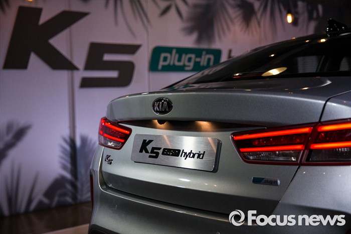 (서울=포커스뉴스) 12일 오전 서울 강남구 인터와이드 스튜디오에서 열린 '2017 K5, K5 PHEV' 출시 사진 및 영상 발표회에 K5 'PHEV' 차량이 전시되어 있다.