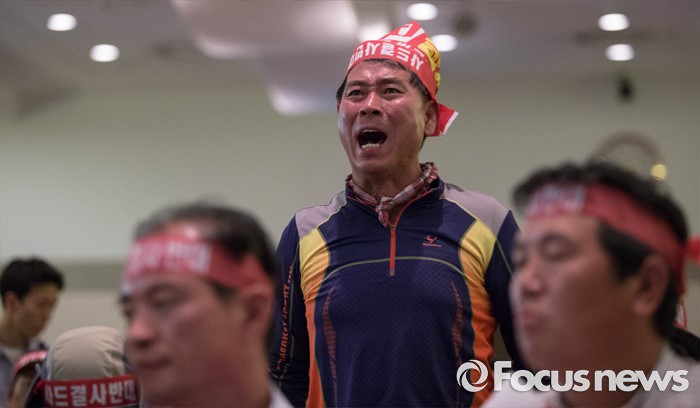 (서울=포커스뉴스) 13일 오후 황인무 국방부 차관이 경북 성주에 사드 배치를 확정한 국방부의 공식 발표 후 서울로 상경, 서울 용산 국방부 컨벤션센터를 항의 방문중인 김항곤 성주군 군수, 사회단체장 및 군민을 찾아 대화를 나누고 있다.