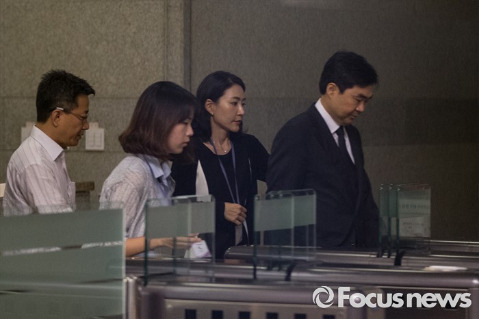 (서울=포커스뉴스) '주식 대박' 논란에 휩싸인 진경준(오른쪽) 검사장이 14일 오전 서울 서초구 서울중앙지방검찰청으로 들어가고 있다.