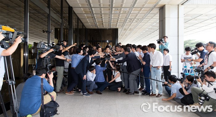 (서울=포커스뉴스) '주식 대박' 논란에 휩싸인 진경준 검사장이 14일 오전 서울 서초구 서울중앙지방검찰청으로 출석하고 있다.