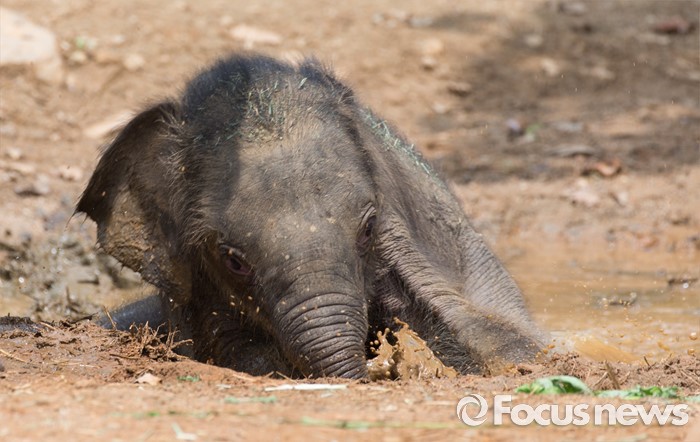 (과천=포커스뉴스) 14일 오후 경기도 과천 서울대공원에서 지난달 24일에 태어난 새끼 아시아 코끼리(암컷)가 야외 방사장을 뛰놀다 넘어지고 있다. 이 아기코끼리는 '멸종위기에 처한 야생 동식물의 국제 거래에 관한 협약(CITES)' 1급 보호종으로 지정된 아시아코끼리다.