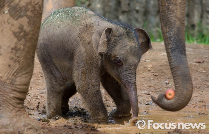 (과천=포커스뉴스) 14일 오후 경기도 과천 서울대공원에서 지난달 24일에 태어난 새끼 아시아 코끼리(암컷)가 야외 방사장을 뛰놀고 있다. 이 아기코끼리는 '멸종위기에 처한 야생 동식물의 국제 거래에 관한 협약(CITES)' 1급 보호종으로 지정된 아시아코끼리다.