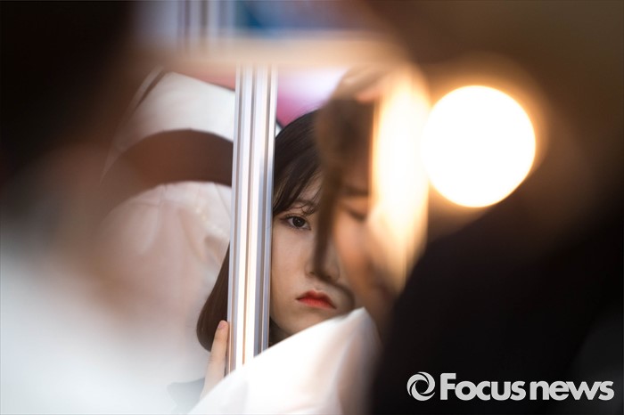 (서울=포커스뉴스) 14일 오후 서울 강남구 코엑스에서 열린 전문대학 엑스포에 참가한 학생들이 메이크업을 체험하고 있다.