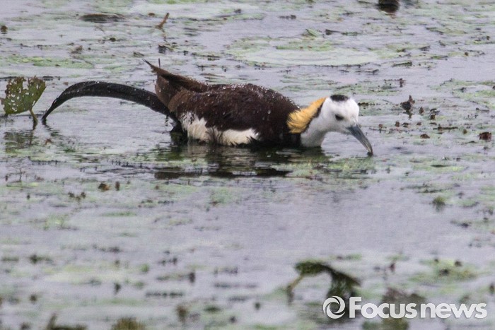 (의왕=포커스뉴스) 아열대성 조류 물꿩이 왕송지의 연밭에서 먹이를 잡고 있다.