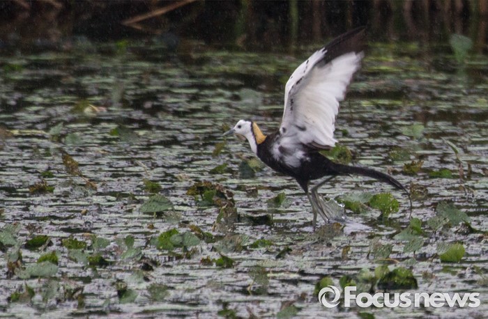 (의왕=포커스뉴스) 아열대성 조류인 물꿩이 16일 오후 경기 의왕시 왕송지 연밭에서 먹이를 찾고 있다.