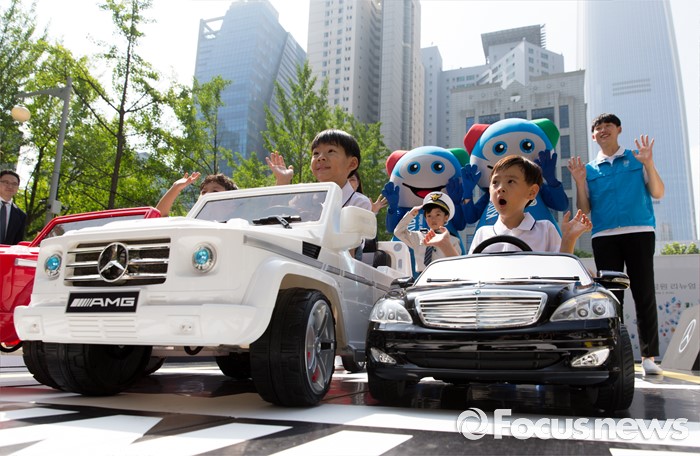 (서울=포커스뉴스) 19일 오전 서울 송파구 어린이 교통안전교육장에서 어린이들이 모바일키즈 프로그램을 통해 교통안전교육을 체험하고 있다. 메르세데스-벤츠 사회공헌위원회와 도로교통공단은 지난 2015년부터 1년 7개월여 동안 어린이교통공원을 개보수 지원했다.