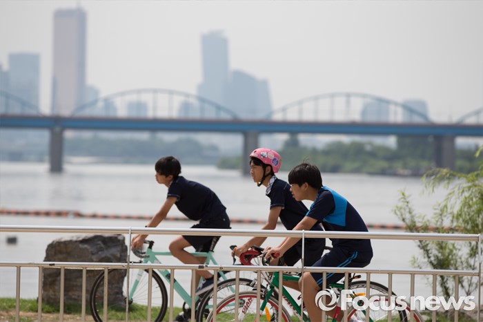 (서울=포커스뉴스) 서울 지역에 폭염주의보가 내린 19일 오후 서울 서초구 반포한강공원 일대에서 시민들이 자전거를 타고 있다.