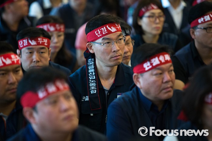 결의문 듣는 금융노조 노조원들