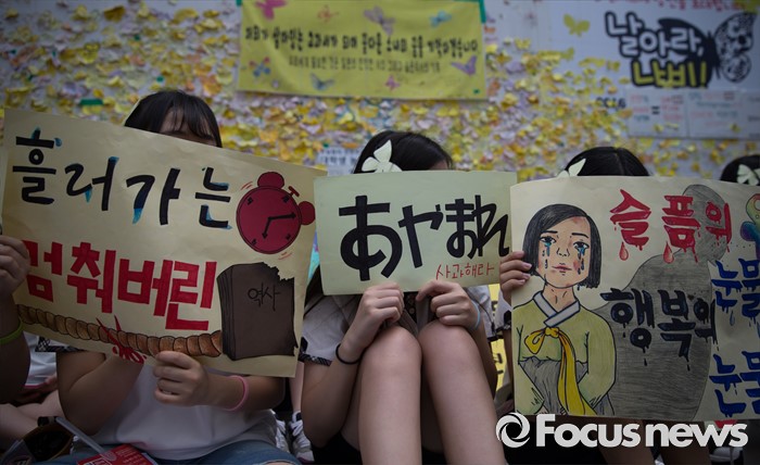 (서울=포커스뉴스) 20일 오후 서울 종로구 옛 일본대사관 앞에서 제1240차 일본군 위안부 문제해결을 위한 정기 수요집회가 열리고 있다.
