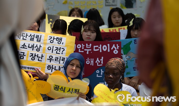 (서울=포커스뉴스) 20일 오후 서울 종로구 옛 일본대사관 앞에서 제1240차 일본군 위안부 문제해결을 위한 정기 수요집회가 열리고 있다.