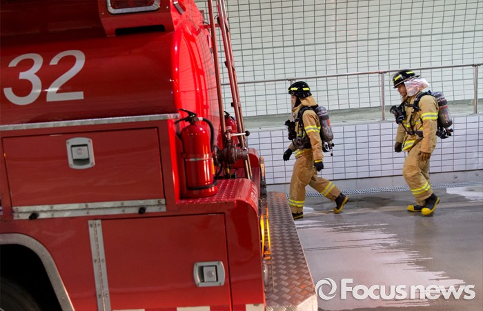 (서울=포커스뉴스) 20일 오후 서울 관악구 봉천터널 내에서 서초소방서, 방배경찰서 대원들이 강남순환도로 화재대응 유관기관 합동훈련을 하고 있다.
