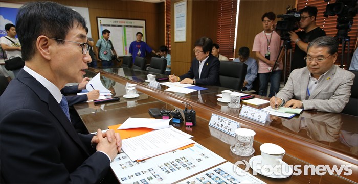 (세종=포커스뉴스) 이준식(왼쪽) 사회부총리 겸 교육부장관이 20일 오후 세종시 정부세종청사 교육부 접견실에서 새롭게 구성된 전국시도교육감협의회 회장단과 간담회를 갖고 있다.