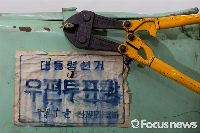 (서울=포커스뉴스) 20일 오전 서울 종로구 선거연수원에서 관계자들이 1987년 제13대 대통령선거 구로구을 우편투표함을 개봉하고 있다.