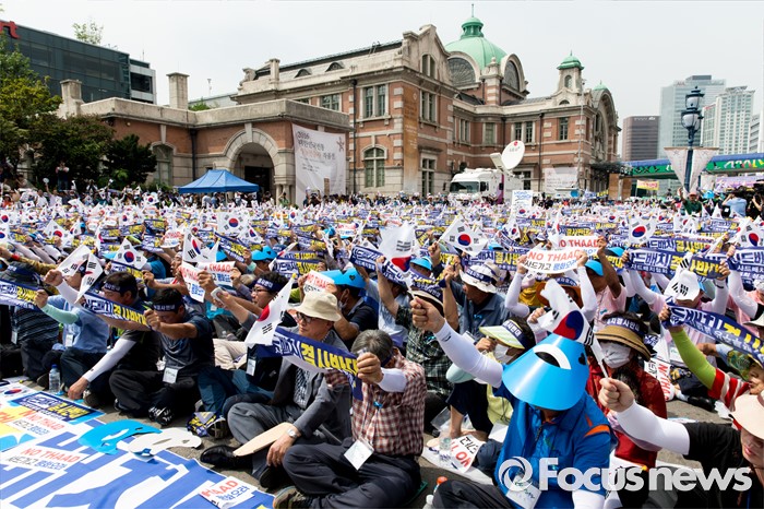 (서울=포커스뉴스) 21일 오후 서울역 광장에서 사드 배치 반대를 요구하는 경북 성주군민 2천여 명이 대규모 상경집회를 하고 있다.