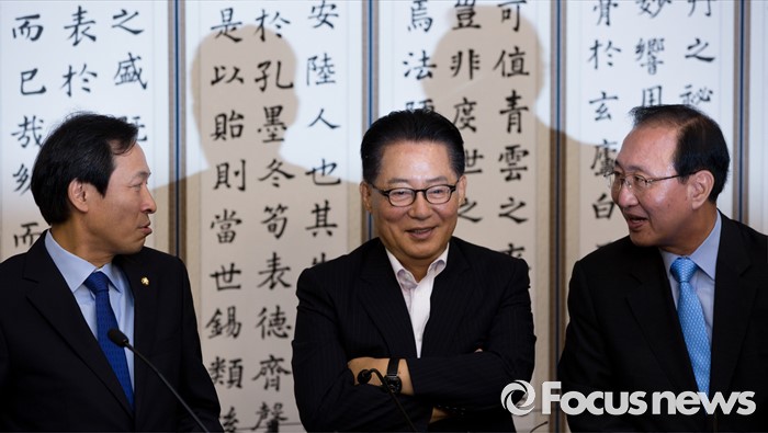 (서울=포커스뉴스) 야3당 원내대표가 3일 오전 서울 여의도 국회에서 열린 원내대표 회동에 참석해 대화하고 있다. 왼쪽부터 우상호 더불어민주당 원내대표, 박지원 국민의당 원내대표, 노회찬 정의당 원내대표.