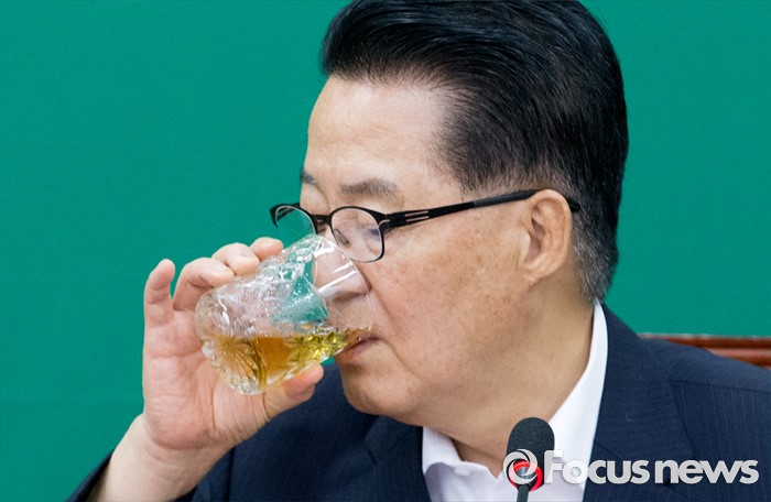 (서울=포커스뉴스) 4일 오전 서울 여의도 국회에서 열린 국민의당 원내정책회의에 참석한 박지원 비상대책위원장이 음료를 마시고 있다.