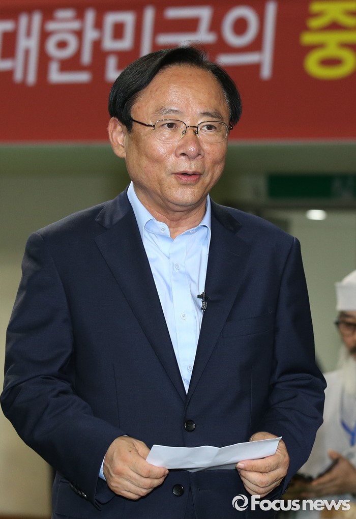 (천안=포커스뉴스) 5일 오후 충남 천안시 유관순체육관에서 열린 새누리당 대표 및 최고위원 선출 충청권 합동연설회에서 당 대표에 출마한 이주영 후보가 합동연설회를 마치고 기자회견을 하고 있다.