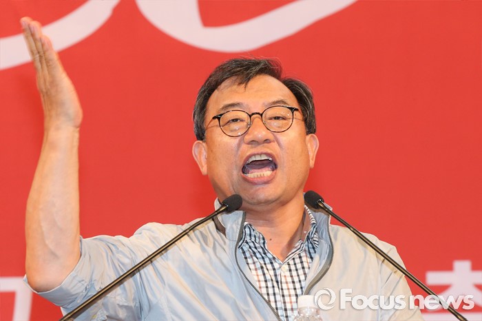 (천안=포커스뉴스) 5일 오후 충남 천안시 유관순체육관에서 열린 새누리당 대표 및 최고위원 선출 충청권 합동연설회에서 당 대표에 출마한 이정현 후보가 정견발표를 하고 있다.