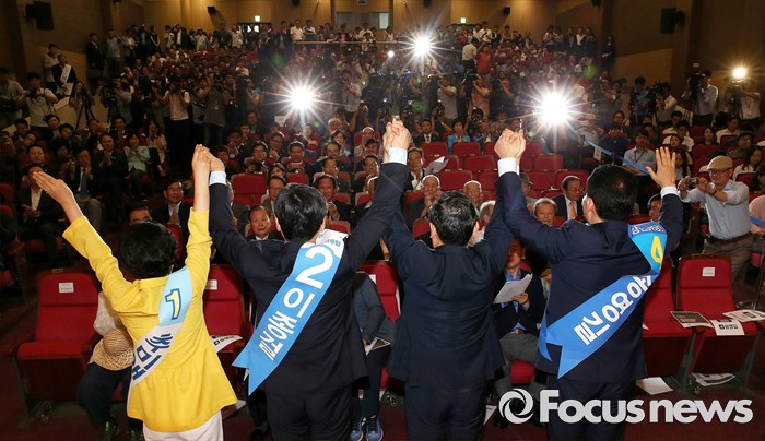 당 대표 후보로 선정된 추미애·이종걸·김상곤 후보는 기쁨을 감추지 못하는 반면 송영길 후보는 담담한 듯 씁쓸한 웃음을 보였다.