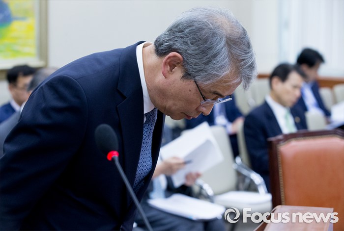 (서울=포커스뉴스) 8일 오전 서울 여의도 국회에서 열린 정무위원회 전체회의에 참석한 임종룡 금융위원장이 제안설명에 앞서 인사하고 있다.