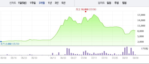 앞서 아이카이스트랩은 “SK텔레콤과 68억6415만원 규모의 중계기 납품 계약을 맺었다”고 1일 공시했다. 이는 지난해 매출액의 17.53%에 해당하는 규모로, 계약기간은 오는 12월23일까지다.주가흐름<사진출처=네이버 캡쳐>